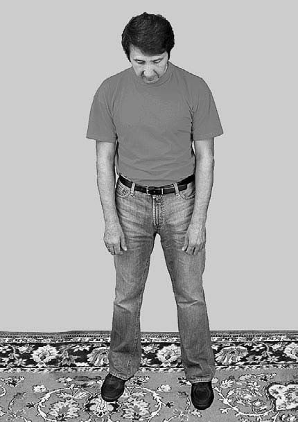 Исходное положение: стоя прямо и ровно. На счет «раз» сделать легкий наклон вперед. Плечи расслаблены, голова опущена, руки абсолютно расслаблены, как в упражнении «Насос» основного комплекса. Одновременно с наклоном сделать короткий шумный вдох носом.