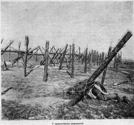 На проволочных заграждениях противника.