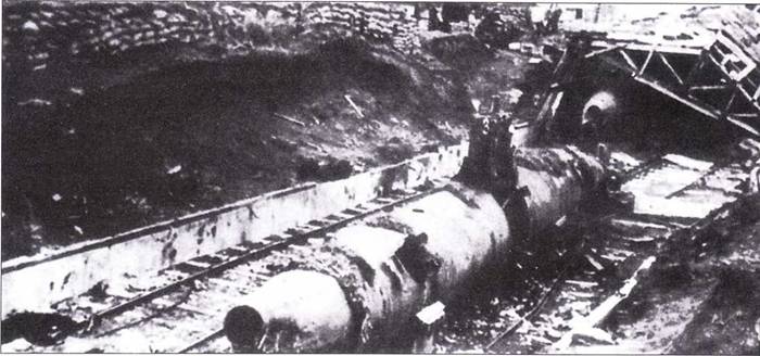 Японские сверхмалые подводные лодки после бомбардировки верфи в Нагасаки.