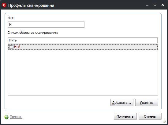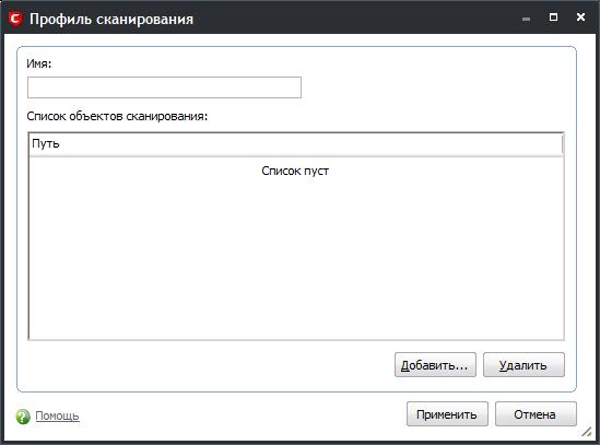 Остальные профили я создал самостоятельно. Для создания собственного профиля (например, для проверки флешки) нажмите кнопку Создать профиль. В открывшемся окне (рис. 7.6) введите название профиля и с помощью кнопки Добавить добавьте объекты сканирования (диски и каталоги).