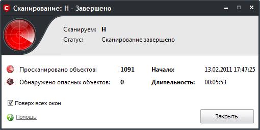 На рис. 7.7 изображено окно сканирования (выбран профиль H). На рис. 7.8 изображен результат сканирования – опасных объектов не обнаружено.