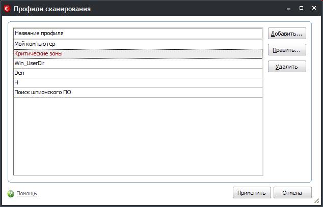Профиль Критические зоны нужно использовать для регулярной, скажем, раз в неделю, проверки. Профиль Win_UserDir сканирует ваш домашний каталог и системный каталог Windows. Профиль Поиск шпионского ПО позволяет найти программы-шпионы (spyware).