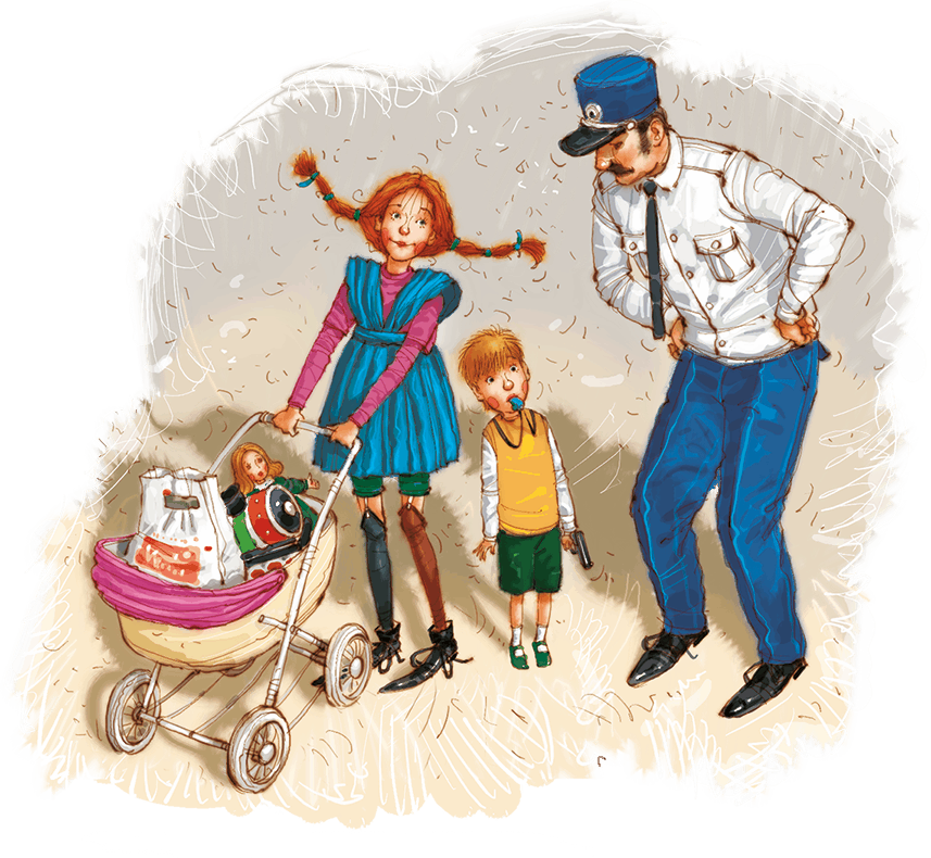 – А теперь все за мной, у нас есть дела напротив! – скомандовала Пеппи и, перебежав через улицу, смело вошла в игрушечный магазин.