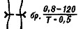 Брод с указанием его глубины (0,8 м), длины (120 м), характера дна (Т -твердое, П - песчаное, В - вязкое) и скорости течения (0,5 м/с)