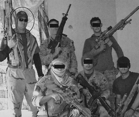 Фаллуджа-2004. На этом снимке я с винтовкой.300 WinMag в компании снайперов, вместе с которыми мне довелось работать. Один из них служит в SEAL, а остальные — в морской пехоте (это видно по камуфляжу).