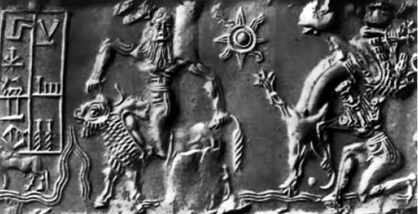 Гильгамеш, сражающийся со львом. Оттиск печати. XXIV в. до н. э.