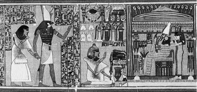 Гор ведет умершего к трону Осириса. Рисунок из «Книги мертвых» Ани. Ок. 1450 г. до н. э.