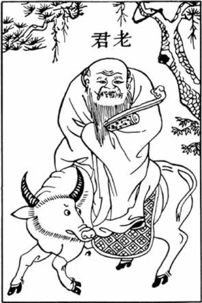 Основатель даосизма Лао-цзы верхом на буйволе покидает пределы Китая. Старинная китайская книжная гравюра