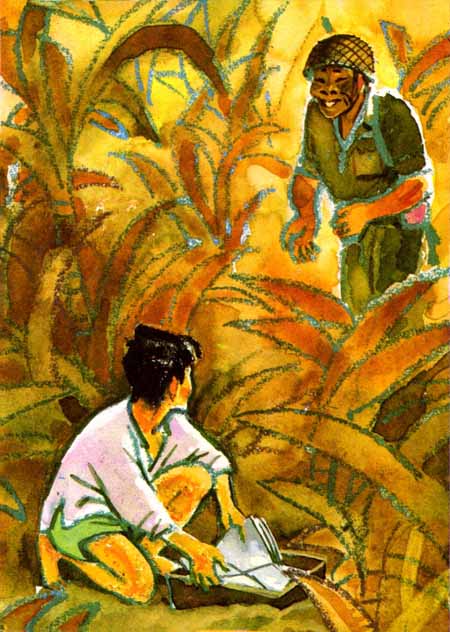 Шао поспешил убраться с опасного места. Если уж и этот молокосос с вьетконговцами, значит, все село за них. Шао не боялся Ута, но боялся многих глаз, которые, как мерещилось ему теперь, следят за ним отовсюду. Наверно, вьетконговцы послали Ута на разведку, а сами тем временем окружили село. Что же теперь делать? Как спастись? Пожалуй, бумажонку от красных достать надо… А что, если листовку? Здорово придумано! Листовку, листовочку, ха-ха!..