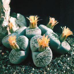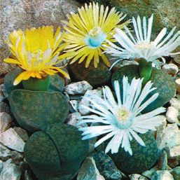 L. lesliei (N. E. Br.) N. E. Brawn – Л. Лесли . Отдельная головка растения состоит из пары очень сочных листьев, верхние конечности которых очерчены в виде полукруга, а обращенные друг к другу – плоские. Внешние боковые стороны листьев гладкие. Окраска верхней поверхности листа крапчатая. Поверхность листа под отметинами несколько приподнята. Цветки появляются по одному между листьев, раскрываются в среднем до 2,5 см в диаметре, почти скрывая головку растения. Цветки обычно желтые или белые, раскрывающиеся в середине дня и закрывающиеся с наступлением сумерек. С возрастом образуют скопления, состоящие из 10–20 отдельных головок. Родина – провинции Оранжевая и Трансвааль (Южная Африка).