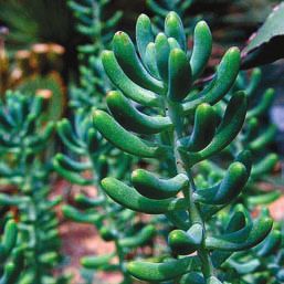 S. morganianum E. Walther. – C. Моргана . Стебли стелющиеся или повисающие вниз, обильноветвящиеся от основания. Листья удлиненно-ланцетные, 2 см длиной, 8 см толщиной, изогнутые дуговидно, светло-зеленые с голубоватым восковым налетом. Легко опадают при механическом воздействии. Соцветие верхушечное небольшое, с 6-12 розоватыми или темно-пурпурными цветками. Одно из красивейших и любимых ампельных комнатных растений. Родина – Мексика.