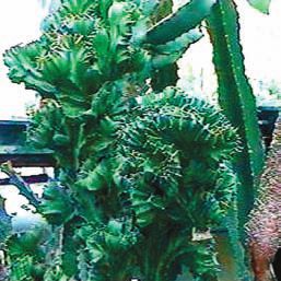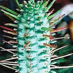 E. grandidens Haw. – М. крупнозубчатый . Суккулентно-стеблевое дерево, в природе достигающее 10–16 м в высоту, обильноветвящееся. Ветви обычно 3-гранные, редко 2– или 4-гранные, темно-зеленые, 1,2–2 см в диаметре. Края ребер глубоковыемчатые. Бугорки 6–7 мм высотой, на расстоянии 0,8–3 см друг от друга. Колючек две, 0,5–6 мм длиной (иногда они отсутствуют), серые, часто с парой крошечных шипиков над ними. Листья чешуевидные. Родина – Южная Африка.