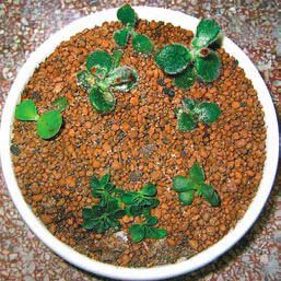 – оптимально укоренение в плошке, где на 3/4 насыпан грунт и на 1/4 сверху – крупнозернистый песок: корни вырастают в песке и постепенно добираются до грунта; такой способ не требует немедленного рассаживания растений;