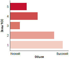 На рис. 4.2–4.4показано, каким образом может выглядеть распределение времени тренировок по зонам ЧСС в течение сезона. При этом мы допускаем, что гонка, к которой готовится спортсмен, всегда принадлежит к типу A. Цель этих рисунков состоит не в том, чтобы дать вам информацию по конкретным цифрам или объемам, а скорее в том, чтобы предложить примерный метод распределения интенсивности в ходе тренировочного процесса. Эти примеры должны служить лишь руководством к действию. Вы сами должны решить, какой должна быть доля упражнений с высокой или низкой интенсивностью в графике ваших тренировок.