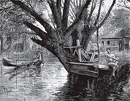 Карикатура 1880 года: создание Гребного клуба Сомервиля.