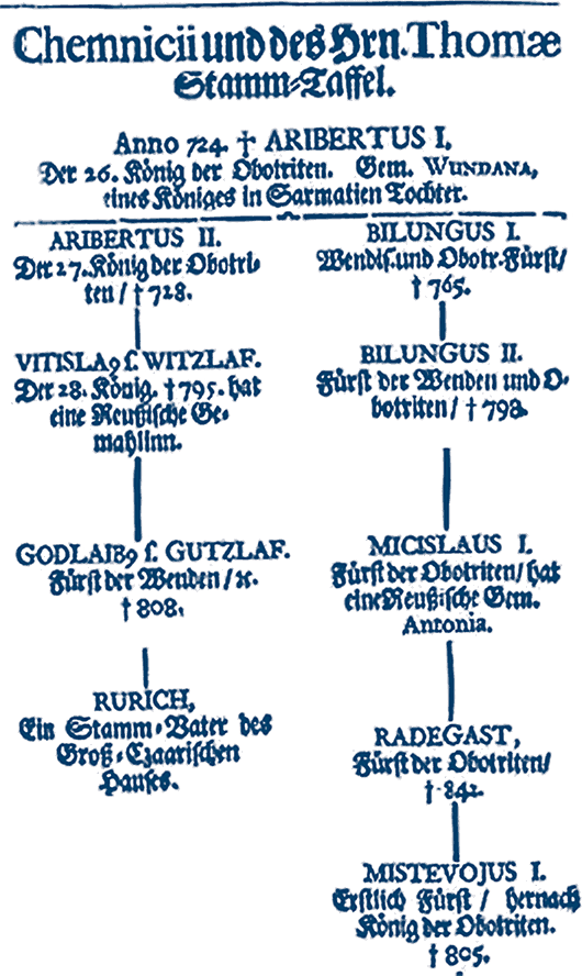 Зато в одном из комментов прислали таблицы… Вот одна из них. «Вендо-ободритские короли и князья (по Ф. Хемницу)».