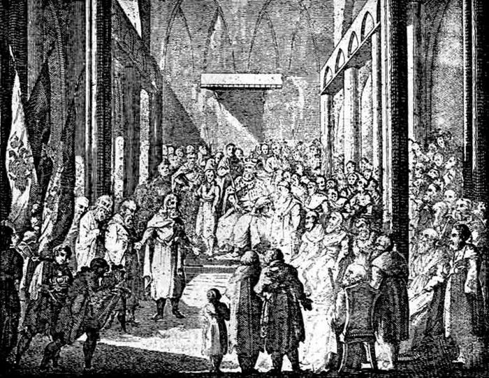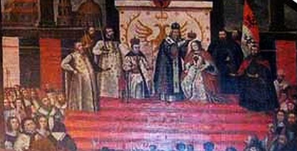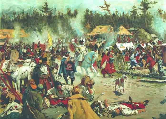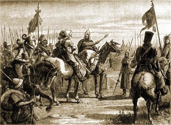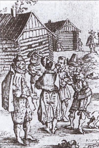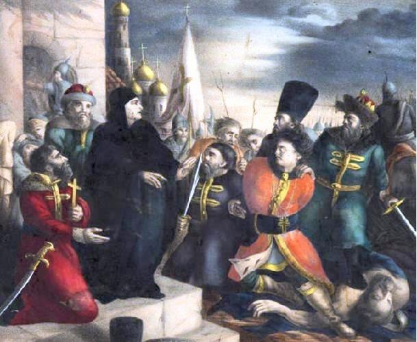 С появлением Лжедмитрия II у стен Москвы начался длительный период жестокой междоусобицы. Страна оказалось расколотой на два враждебных лагеря. И в Москве, и в Тушине сидели царь и царица [32] , патриарх (в Тушино был увезен захваченный в Ростове митрополит Филарет Романов). У обоих царей были Боярская дума, приказы, войска, оба жаловали своим сторонникам поместья и мобилизовали ратных людей. «Воровская» Боярская дума была достаточно представительной и состояла из различного рода оппозиционеров. Главой Думы был «боярин» князь Дмитрий Тимофеевич Трубецкой. При московском дворе он был всего лишь стольником, и перебежал к самозванцу одним из первых, 24 июля 1608 г., прямо во время боя («с дела»). Значительную силу в Думе представляли родственники «патриарха» Филарета — М. Г. Салтыков, князь Р. Ф. Троекуров, князь Л. Ю. Сицкий, князь Д. М. Черкасский; служили Лжедмитрию II и любимцы его предшественника — князь В. М. Мосальский-Рубец и другие Мосальские, князь Г. П. Шаховской, М. А. Молчанов, дьяки И. Т. Грамотин, П. А. Третьяков. Многие служилые люди перебегали от самозванца к Шуйскому и обратно, получая за новые измены все новые и новые пожалования. Авраамий Палицын метко именует их «перелетами». По словам троицкого келаря, бывало и так, что днем дворяне пировали в «царствующем граде», а «по веселии» одни отправлялись в царские палаты, а другие — «в Тушинские таборы перескакаху». Уровень нравственного падения современников, которые «царем же играху яко детищем» и совершали многочисленные клятвопреступления, ужасал Палицына.