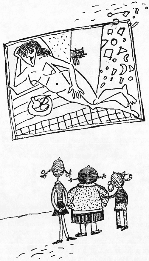 Иногда целый зал голых. Это для того, чтоб люди не жалели сильно, что им нельзя без одежды ходить в жару. Искусство вообще для того и дано, чтобы люди не сильно жалели об оставшейся за рамками этого искусства ихней жизни. Где серые макароны, некрасивые трусы и холодная пустота внутри. Где боишься засыпать, потому что от снов не знаешь, что ожидать, как от пьяных соседей.