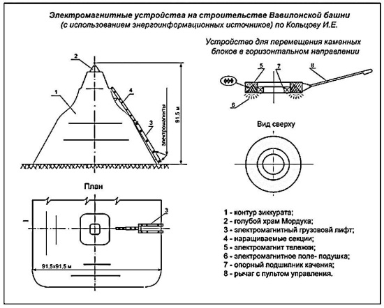Вскоре после завершения возведения Вавилонской башни в XII в. до н. э. электрифицированные египетские грузоподъемные устройства были использованы также на строительстве дворца с висячими садами. После чего эти механизмы были возвращены в Египет и спрятаны в подземелья.