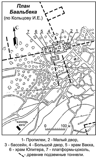 Главную часть баальбекской веранды (с цоколем), размером 49 х 89 м занимают руины храма (см. рис. 65), некогда сложенного из обычных блоков 2–3 кубометров. Строительным материалом являлся мраморизованный известняк – камень сравнительно мягкий, хорошо поддающийся обработке.