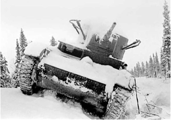 Подбитый танк Т-26 во время зимней войны