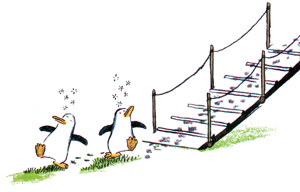 Как только эта парочка спустилась вниз, пингвины отвели их подальше от ковчега, чтобы Ной не почувствовал запаха рыбы.