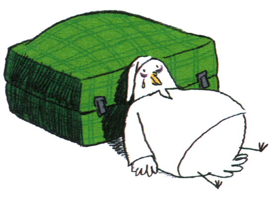 Услышав это, большие пингвины почувствовали такую неловкость, что даже отвернулись. Голубка же осыпала чемодан поцелуями.