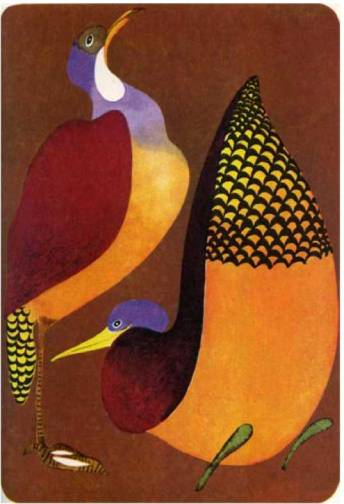 Присутствовать при яйцах и при том, что из них получится, самки не хотят, уходят, поручив все это петухам. Но на призыв другого самца приходят и одаряют новое гнездо красивыми яйцами.