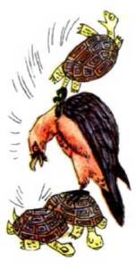 Трудно было бы в это поверить, но исследователи сфотографировали все стадии трудового процесса: как летит стервятник и несет в клюве довольно увесистый камень, как, вытянувшись вверх, бросает его на страусиное яйцо, как яйцо колется и «начинается пиршество».