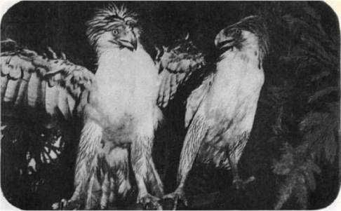 За внешнее сходство с гарпией, за особые вкусы к обезьяньему мясу этих хохлатых орлов можно было бы назвать африканскими гарпиями, хотя они не только иного вида, но и рода. А гарпиями азиатскими – еще двух хищных птиц: филиппинского обезьяноеда и новогвинейского гарпиевидного орла. Первый, к сожалению, почти истреблен – только около ста их осталось. Международный союз зоопарков постановил не покупать больше у филиппинцев этих орлов. Может быть, такая запоздалая, впрочем, мера хоть немного поможет спасти исчезающий вид.