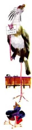 Секретарь – птица особенная: когда он с достоинством вышагивает на длинных ногах по саванне, то похож на короткоклювого журавля или аиста. Черные перья его хохла сложены узким пучком на голове, если птица спокойна. За хохол его секретарем и прозвали: была манера у клерков прежних времен закладывать за ухо гусиное перо, чтобы оно всегда было под рукой, когда потребуется писать.