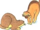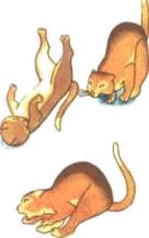 Всякая кошка, нарушитель границ, подвергается сначала «ритуалу осмотра»: владелец территории приближается к ней, готовый в любую секунду к беспощадной битве, обходит пришельца со всех сторон, ударяет по носу чужака передней лапой.