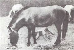 Мы свели буланого жеребца, представителя другого типа степных диких лошадей (то есть жеребца лошади Пржевальского), с домашними потомками мышастого тарпана: с кобылами ирландских пони и польских коников. И уже во второй серии скрещиваний, в Мюнхене, получили совершенно сказочного жеребенка! Он словно одет был в серую униформу: мастью похожий на мышь, с черной гривой и хвостом и с широким темным ремнем по хребту. А когда он повзрослел, то стал более светлым снизу, а ноги его, наоборот, потемнели, совсем как у старого тевтонского коня, — это была наша первая примитивная лошадь! Она родилась, когда уже ни один человек не надеялся ее увидеть. Все случилось как в волшебной сказке!»