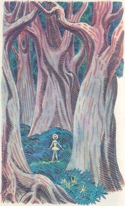 Деревья-гиганты словно выходили ей навстречу одно за другим, и каждое новое дерево было еще прекраснее предыдущего; они точно околдовывали и манили ее в глубь леса. Некоторые были до того велики, что пятидесяти девочкам пришлось бы взяться за руки, чтобы окружить комель. Кора у деревьев была серовато-коричневая, с глубокими желобками. На вид она была мягкой, казалось, что ее можно сжать пальцами, как губку, но на самом деле она была твердой как железо.