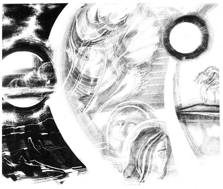 Красное солнце вздрогнуло и поползло прочь от своего ослепительного жёлтого соседа, по-прежнему упорно стоявшего в зените. Видимого смысла в упрямстве Жёлтого солнца не было, оно тоже могло бы спокойно передохнуть, опуститься за горизонт, прочерченный островерхими вершинами. За время беспрестанного труда обоих солнц материк, неузнаваемо преобразился. Ещё недавно покрытый растительностью континент превратился в гигантский раскалённый остров, со всех сторон омываемый обжигающим плазменным бульоном. Всё, что могло гореть, уже сгорело, растаяли последние дымы, и твёрдая поверхность застыла в мертвенной неподвижности. Чернели редкие обугленные кости стволов, белели валуны, потресканными черепами усеявшие равнины, смотрели в небо пустые впадины пересохших озёр.