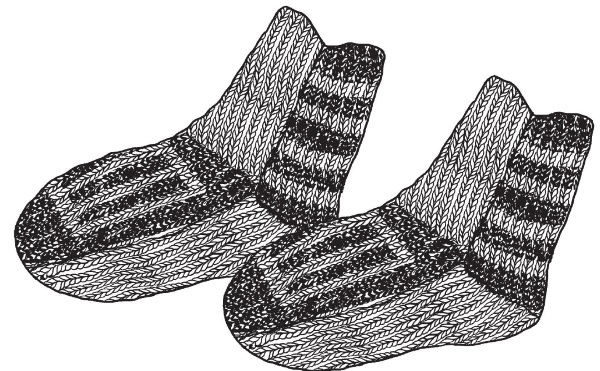 Провязав 8 см, перейти на чулочную вязку и сформировать носок путем убавления петель.