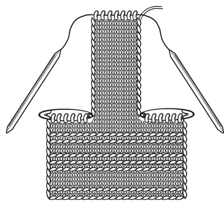 Продолжать работу на задней половине последнего кругового ряда лицевыми и изнаночными рядами.