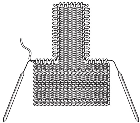 На высоте 2–3 см последний ряд связать за задние дужки петель.