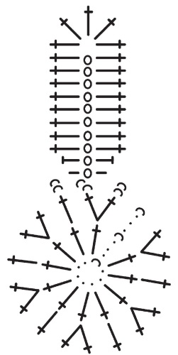 Провязать 1-й ряд столбиками с накидом в каждую петлю цепочки.