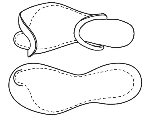 С помощью ножа или ножниц вырезать 2 резиновые заготовки (по 1 для правой и левой ноги) и 4 пряжки.
