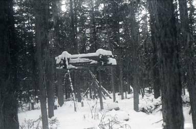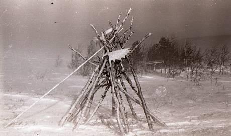 Лабаз (сумьях – мансийское) охотников-манси в тайге. Фото из фотоаппаратов, найденных в палатке дятловцев.