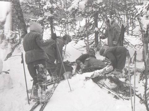 Извлечение содержимого лабаза дятловцев поисковой группой