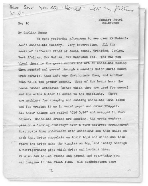 Еще мы видели, как делают карамель, нугу и все сладости, которые только можно себе представить. Некоторое время старик Макробертсон ходил с нами по фабрике.