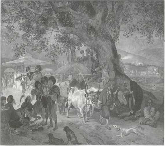 Здесь же, на военных маневрах, не было недостатка и в представителях здешней аристократии. «Между толпами Турок, их жен и детей, — писал очевидец, — подле купеческих приказчиков и лавочных сидельцев из Армян и Греков, попадались и то пешком, то верхом, и очень немногие в экипажах, богатые негоцианты Перы и Галаты, равно как и некоторые европейские дипломаты». С некоторыми знакомцами из иностранных миссий господин С.Н. и его приятели учтиво раскланялись, повстречались они и с группой русских служащих, добравшихся на представление самостоятельно. Европейцы выделялись из толпы простотой своих костюмов.