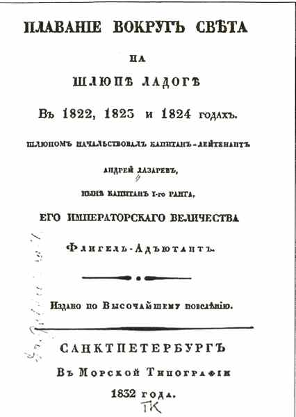 Первая русская экспедиция, посетившая Тасманию (в то время она называлась Ван-Дименовой Землей) в мае 1823 г., состояла из фрегата «Крейсер» и шлюпа «Ладога». Суда направлялись с грузами в Русскую Америку. Возглавлял отряд и командовал «Крейсером» Михаил Петрович Лазарев. В то время это был его третий визит в австралийские колонии. «Ладогу» возглавлял его старший брат Андрей. Об этом плавании впоследствии он опубликовал книгу «Плавание вокруг света на шлюпе «Ладоге» в 1822, 1823 и 1824 гг.».