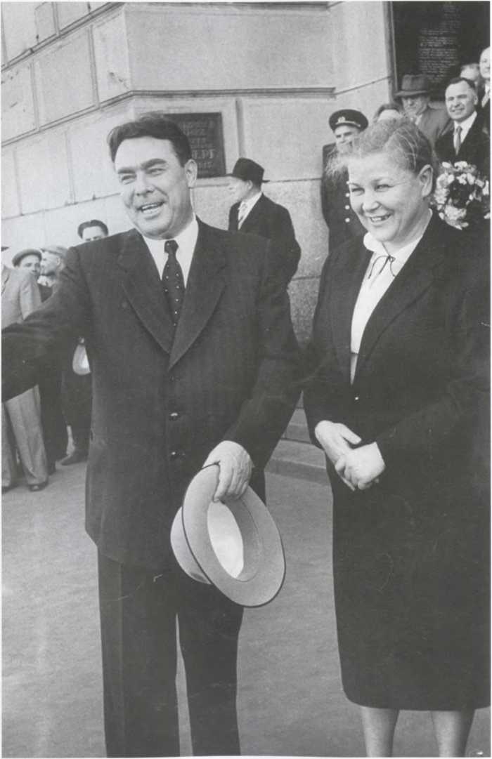 Секретарь ЦК КПСС по оборонной промышленности и кандидат в члены Президиума ЦК КПСС Леонид Ильич Брежнев и первый секретарь Московского горкома КПСС кандидат в члены Президиума ЦК КПСС Екатерина Алексеевна Фурцева (Москва, июнь 1956 г.).