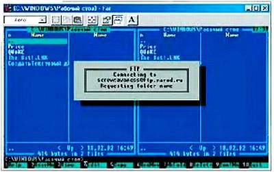 Теперь на соседней файловой панели нужно раскрыть каталог вашего жесткого диска (локального), в котором хранятся файлы и каталоги вашего сайта. Выделите в нем нужные файлы (а также, если нужно, каталоги), нажмите клавишу F5(«копировать») и подтвердите ваши намерения несколькими нажатиями на клавишу Enter. При копировании в отдельном окне индицируется время (прошедшее с начала пересылки и, через косую черту, требуемое для окончания пересылки) для текущего файла и для всех копируемых файлов вместе, а также объем уже переданной информации — общий объем и количество уже скопированной информации в процентах. По окончании копирования файлы и каталоги появятся в списке содержимого удаленного диска. Операции их переименования, перемещения, удаления выполняются так же, как и для локального диска.