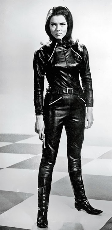 Диана Ригг в роли Эммы Пил из сериала «Мстители», шедшего по телевидению с 1961 по 1969 год.