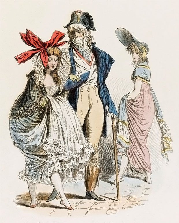 Вычурные наряды в стиле «инкруаябль» высмеивали костюмы аристократии, 1795 год.