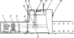 В центральной части стола, внизу, на уровне встречающихся лучей обоих осветителей помещалась зеркальная призма с таким соотношением углов, что оба луча, отражаясь вверх, собирались, равномерно покрывая площадь выреза в верхней крышке стола, над которым располагалась ладонь руки испытуемого. Вверху от призмы помещался еще один горизонтально расположенный дополнительный шестисантиметровый водяной фильтр и толстое зеркальное стекло, препятствующее току воздуха в пространстве, непосредственно соприкасающееся с вырезом в крышке (рис. 5).